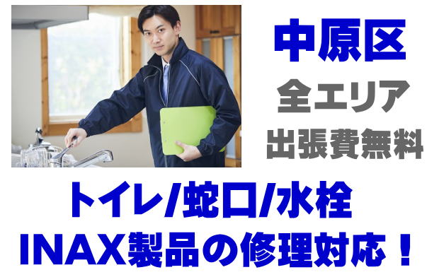 中原区でINAX製品の修理業者をお探しなら当社までお気軽にお問い合わせください。トイレ便器タンクの故障、便座の修理、蛇口やシャワーの水漏れなどイナックス製品に関するトラブルなら何でもご相談ください。